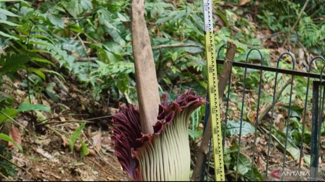 „Am Donnerstag, dem 5. Februar 2026, erreichte die Leichenblume ihre volle Blütephase. Der Kolben stieg auf 140 cm, mit einem Blütendurchmesser von 56 cm. Genau um 00.24 Uhr WIB öffnete sich die Blütenscheide vollständig und markierte den Höhepunkt eines seltenen Ereignisses, das nur kurze Zeit anhielt“, sagte Horticulture Senior Manager von PT Mitra Natura Raya, Manager des Bogor Botanical Gardens, Yudhistira, in einer Erklärung in Jakarta, Samstag.