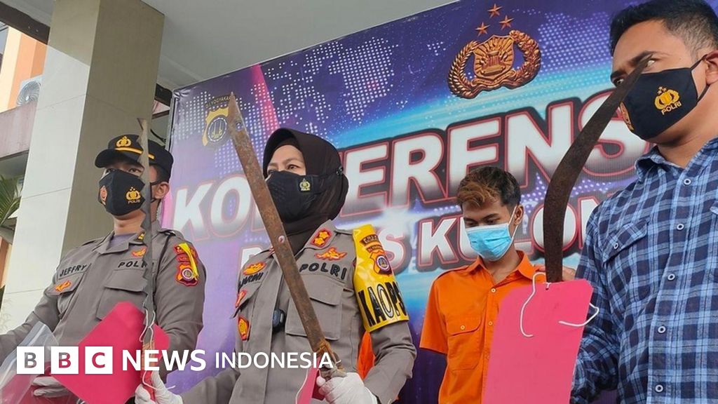 Keterangan gambar, Polisi tunjukkan dua pemuda pemilik senjata tajam identik aksi kekerasan jalanan di Kabupaten Kulon Progo, Daera Istimewa Yogyakarta pada pertengahan 2022 silam.