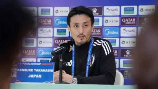 Jakarta – Trainer Japanische Futsal-Nationalmannschaft, Kensuke Takahashilobend Entwicklung und Qualität Indonesische Futsal-Nationalmannschaft vor dem Aufeinandertreffen der beiden Teams im Halbfinale Futsal-Asienmeisterschaft 2026 in der Indonesia Arena, Senayan, Jakarta, Donnerstag, 5. Februar 2026, 19.00 Uhr WIB. Trotz seiner Anerkennung betonte Takahashi, dass Japans Ziel weiterhin der Sieg sei, um sich ein Ticket für das Finale zu sichern.