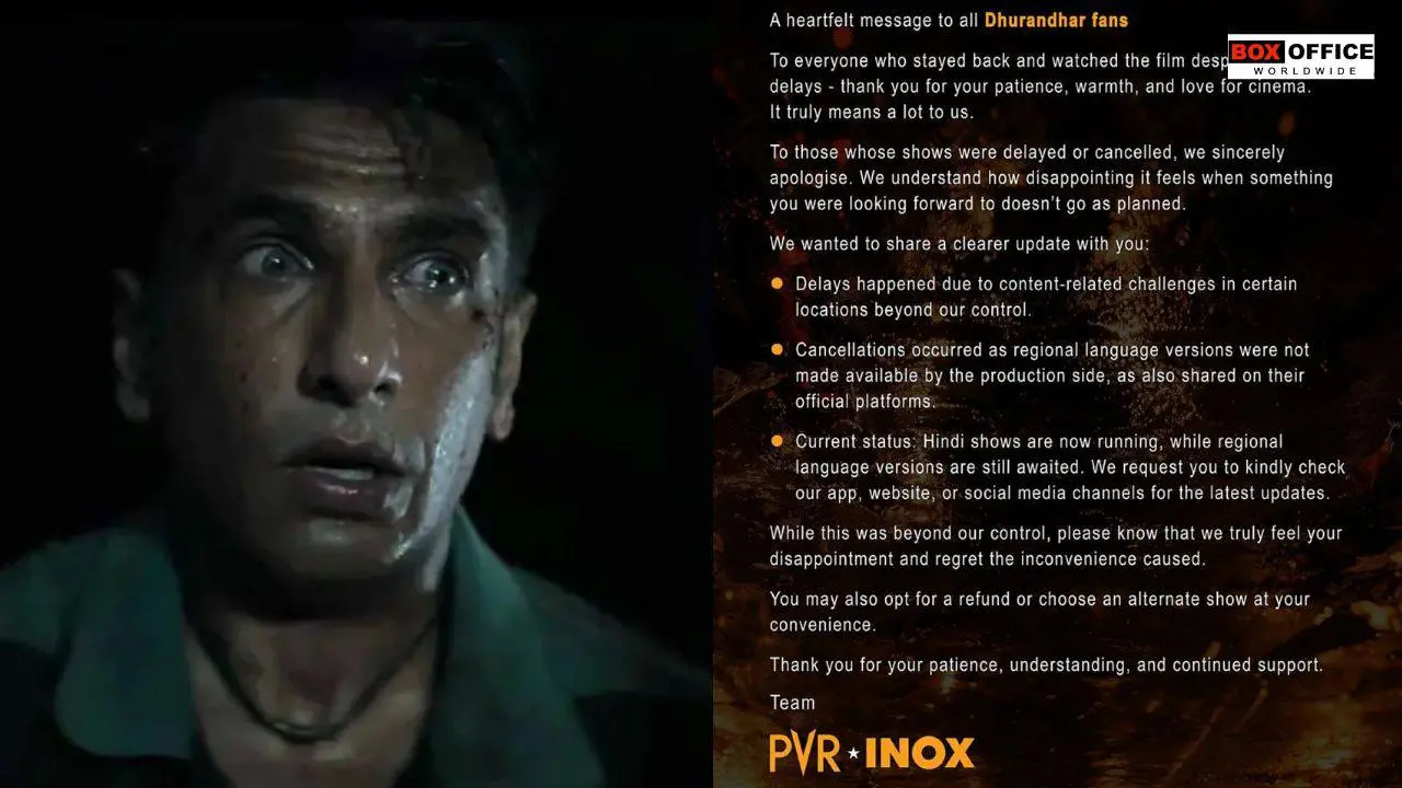 In seiner Botschaft an das Publikum entschuldigte sich PVR INOX für die Störung und erklärte, dass „aufgrund einer unvorhergesehenen Verzögerung der Inhalte durch das Produktionshaus einige Shows von Dhurandhar Die Rache betroffen sind. Wir entschuldigen uns aufrichtig für die Unannehmlichkeiten.“ Die Mitteilung der Kette kam zu einem Zeitpunkt, als die Zeitpläne in den sozialen Medien mit Beschwerden über kurzfristige Absagen, verschobene Spielzeiten und Verwirrung auf Veranstaltungsortebene gefüllt waren.