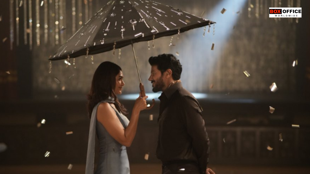 Ein neues Bild von Mrunal Thakur und Dulquer Salmaan, der im Regen stand, tauchten im Internet auf. Es zeigte die Figur von Ram, der einen Regenschirm über Sitas Kopf hielt. Zusammen mit dem Regen flog Konfetti um sie herum, während die beiden einander mit Augen voller Liebe anstarrten. Die Sichtung davon ist möglich Sita Rama Die Canon-Bilder reichten aus, um die Fans ins Wanken zu bringen.
